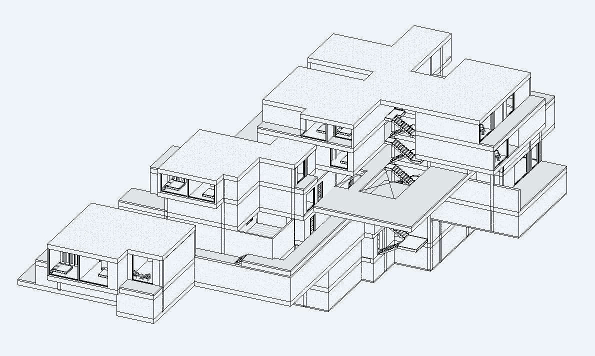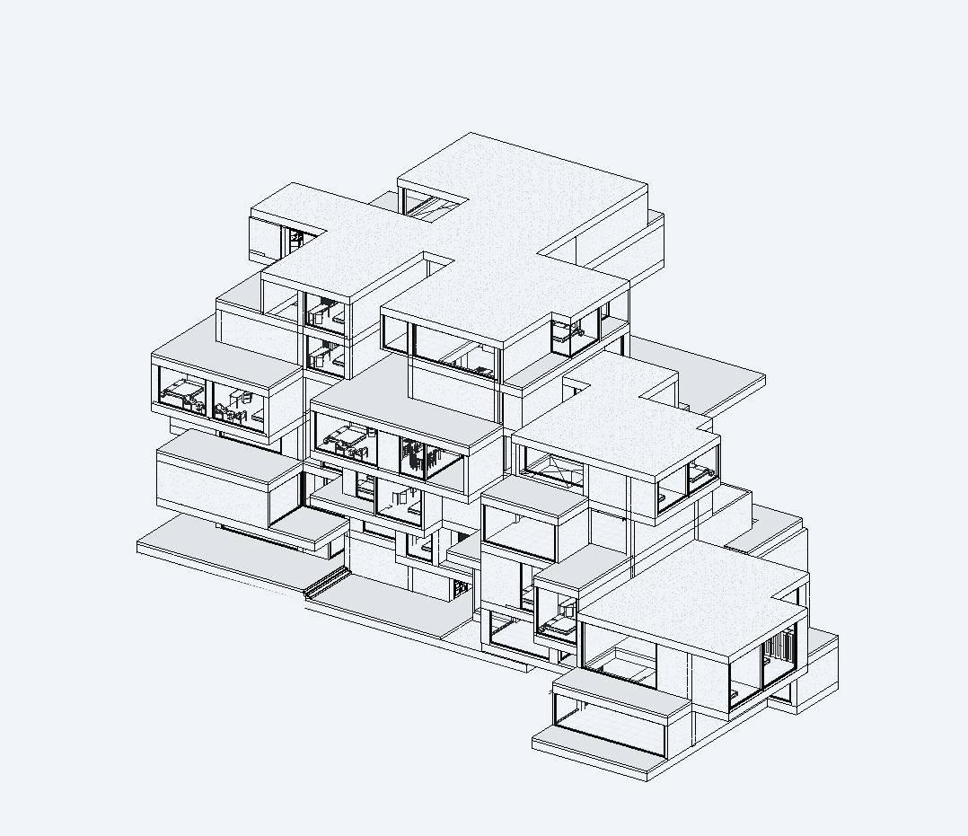 We imagined it as Villa Apartment with Shared common spaces. Cinema, indoor swimming pool and spaces for entertainments. This thing direct us to the idea that each villa has a minimum common neighborhood wall surface. This idea caused that each villa is independence. Each story and each house have a different plan and view. One aspect of this site is that there is no building on that and we use this feature to our design so making a garden terrace for each home help this to have fantastic view.